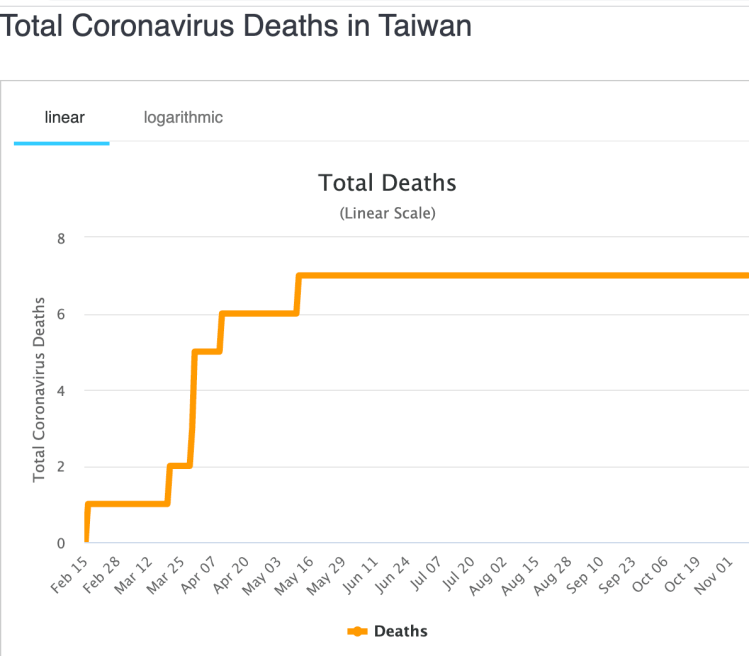 And look at this graph highlighting the number of deaths in Taiwan. It was just seven back in June then and is still seven now.